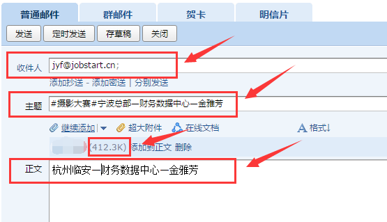 正文:備注家鄉(xiāng)名+部門+姓名