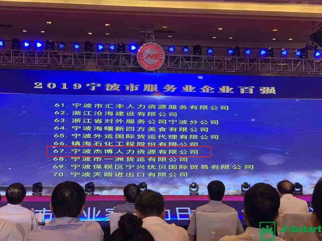 公司業(yè)務(wù)團(tuán)隊合伙人陳國才代表我司出席了頒獎典禮。在本次頒獎典禮中,寧波杰博人力資源有限公司喜獲“2019寧波市服務(wù)業(yè)百強(qiáng)企業(yè)”第67位!